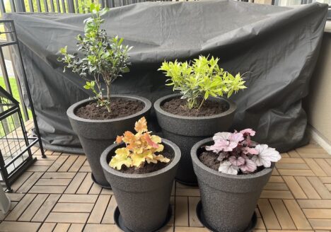 Hi there, This month was so fast! I was busy with lots of things-both at work and at home. At home, I got 4 new plants for my balcony-Ilex (holly) Blue Angel, Heuchera (coral bell) orange and silver, and Pieris japonica (Japanese andromeda) Flaming Silver. They all can tolerate winter (evergreen except coral bells because…